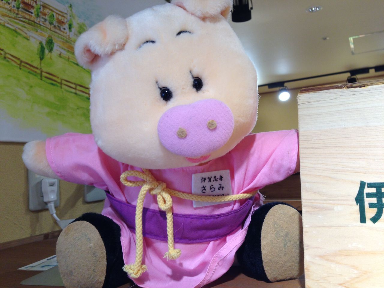 モクモクの看板横にちらっと写る人影…ではなくて、ブタ影。。。